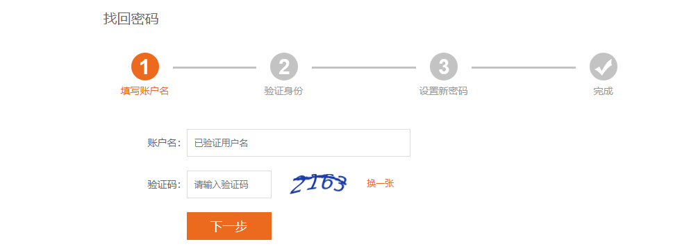 3. 请在账户名框中输入“用户名/已验证手机”任选一项,再输入验证码,点击“提交”;验证身份后即可重新设置新密码。