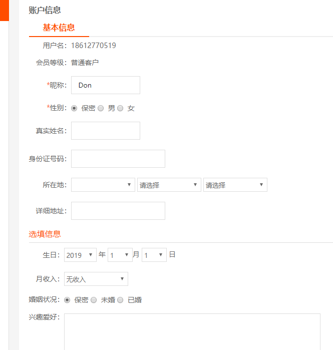 1. 登陆昆仑臻选,进入“会员中心”-“账户中心”-“账户信息”页面;(如下图)
