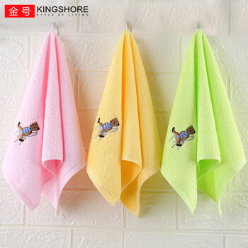 金号毛巾家纺 A类 纯棉提缎卡通小毛巾 吸水儿童面巾 擦手巾 单条装 绿色 50*26cm 42g