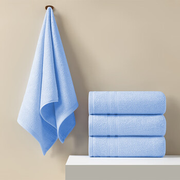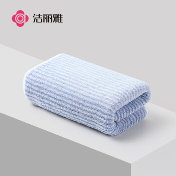 洁丽雅 素色条纹新疆纯棉毛巾成人男女洗脸洗澡面巾汗巾家用兰色30*60cm