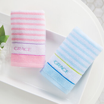 洁丽雅(Grace)毛巾家纺 纯棉吸水绣花洗脸巾柔软横条纹面巾擦脸洁面巾 单条装 红 68*33cm