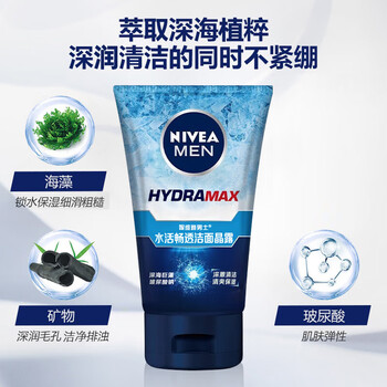 妮维雅(NIVEA)男士【补水保湿】水活畅透洁面泥100g温和清透洗面奶不紧绷护肤品