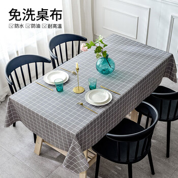 foojo防水桌布茶几布防油桌垫免洗餐桌茶几垫台布加厚pvc90*140cm灰格