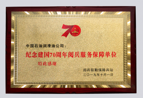 10月9日,建国70周年阅兵专项活动联勤保障兵站代表为昆仑润滑颁发“纪念建国70周年阅兵服务保障单位”奖牌,昆仑润滑副总经理刘中大代表公司接收奖牌。据悉,昆仑润滑是国内润滑油领域唯一获此殊荣的单位,此次授牌更是对昆仑润滑国庆70周年阅兵指定润滑油身份的认可。作为润滑油行业的“国家队”,昆仑润滑紧跟国家军民融合式发展的战略思想,积极落实军民一家亲的优良传统,以实际行动支持阅兵、参与阅兵、保障阅兵。
