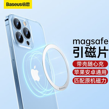 倍思 无线充电磁吸贴片 磁吸引磁环 车载手机支架环型磁铁背贴吸盘 银色【两片装】通用苹果14/13Pro华为小米