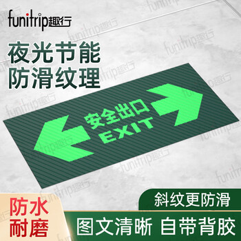 趣行 安全出口直行 夜光墙贴 消防安全疏散标识指示牌 逃离方向指示