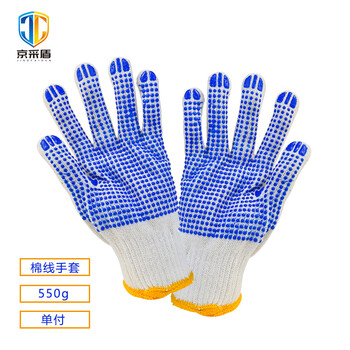 京采盾白色棉线劳保手套通用加厚耐磨点胶蓝色550g 单付(24付起订)