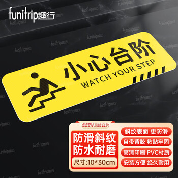 趣行 耐磨警示地贴 斜纹PVC不干胶门槛阶梯防摔警告贴 30CM 小心台阶
